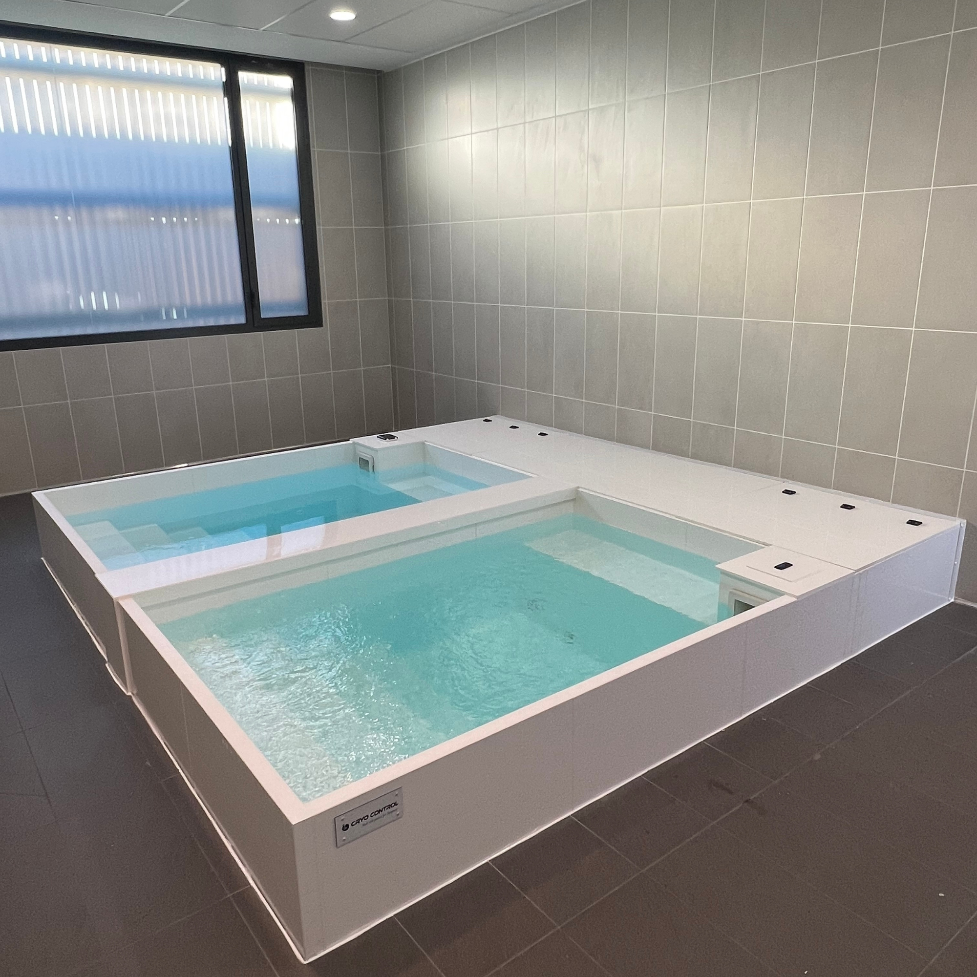 Dans l’optique des Jeux de Paris 2024, nous avons fait installer deux bassins sur mesure semi-enterrés : un chaud et un froid. Cette double solution sur mesure permet une récupération complète et précise pour nos athlètes olympiques. Une réalisation technique irréprochable pour un enjeu majeur.